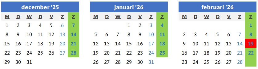 Op onderstaande dagen is geen zwemprogramma: